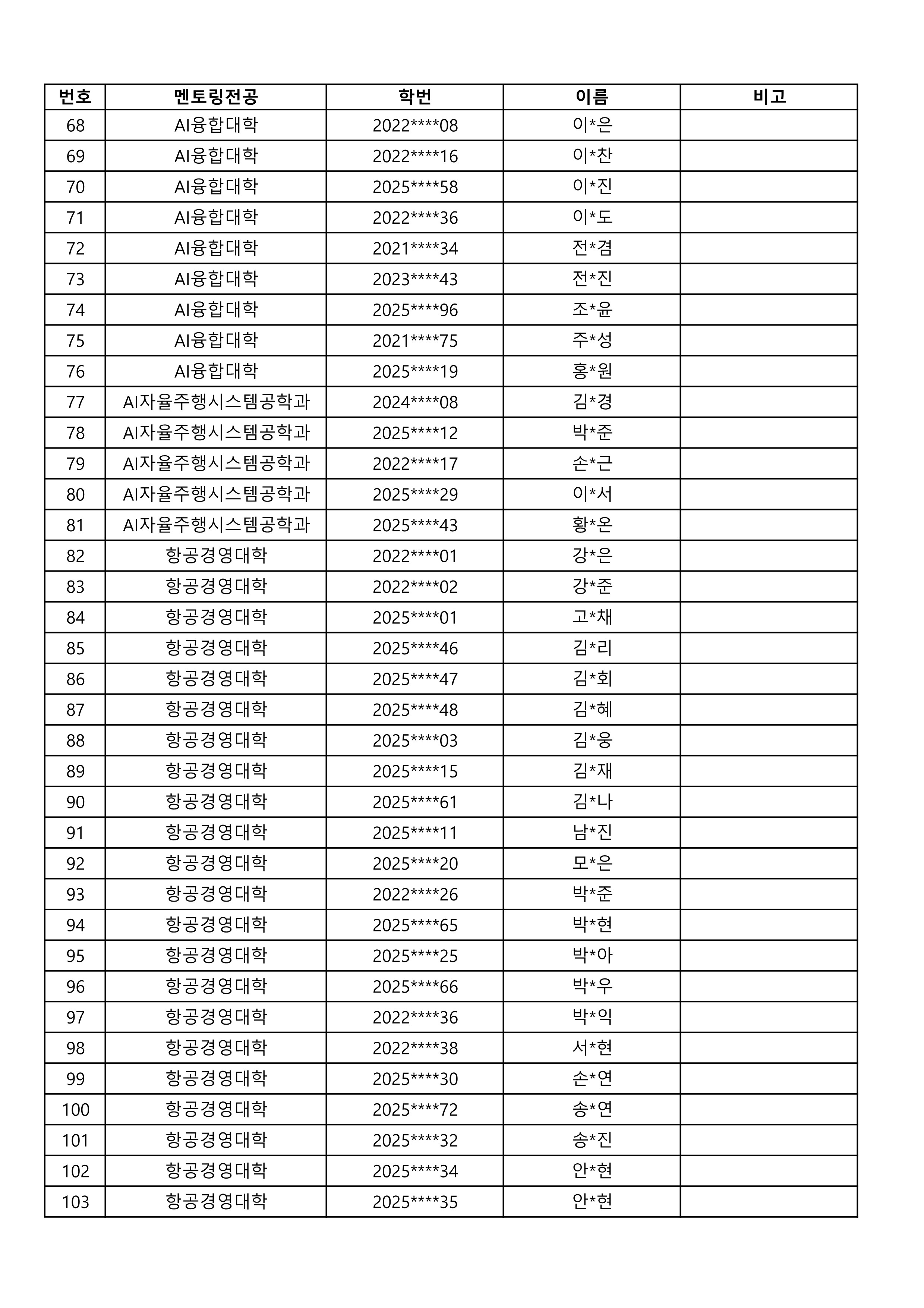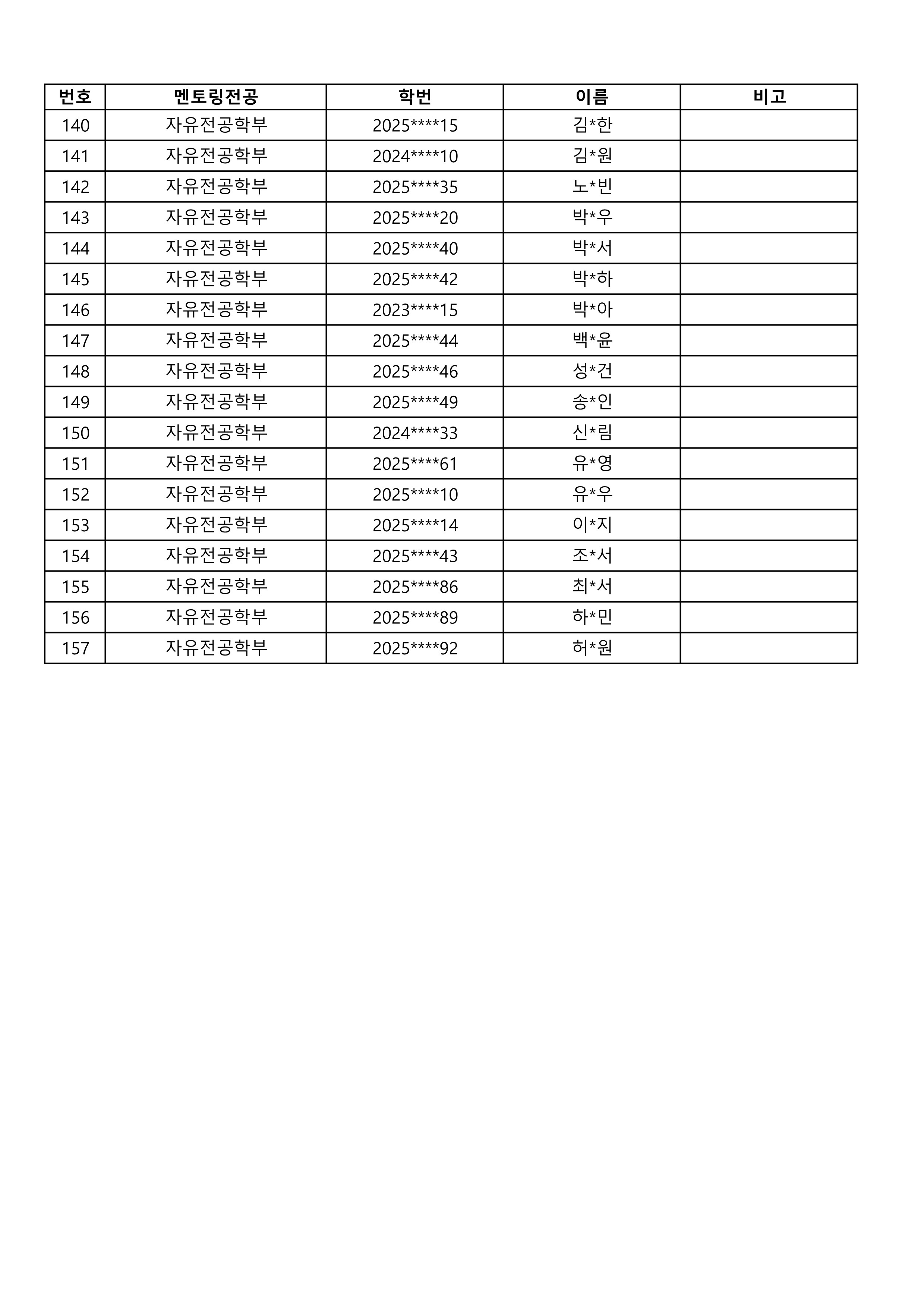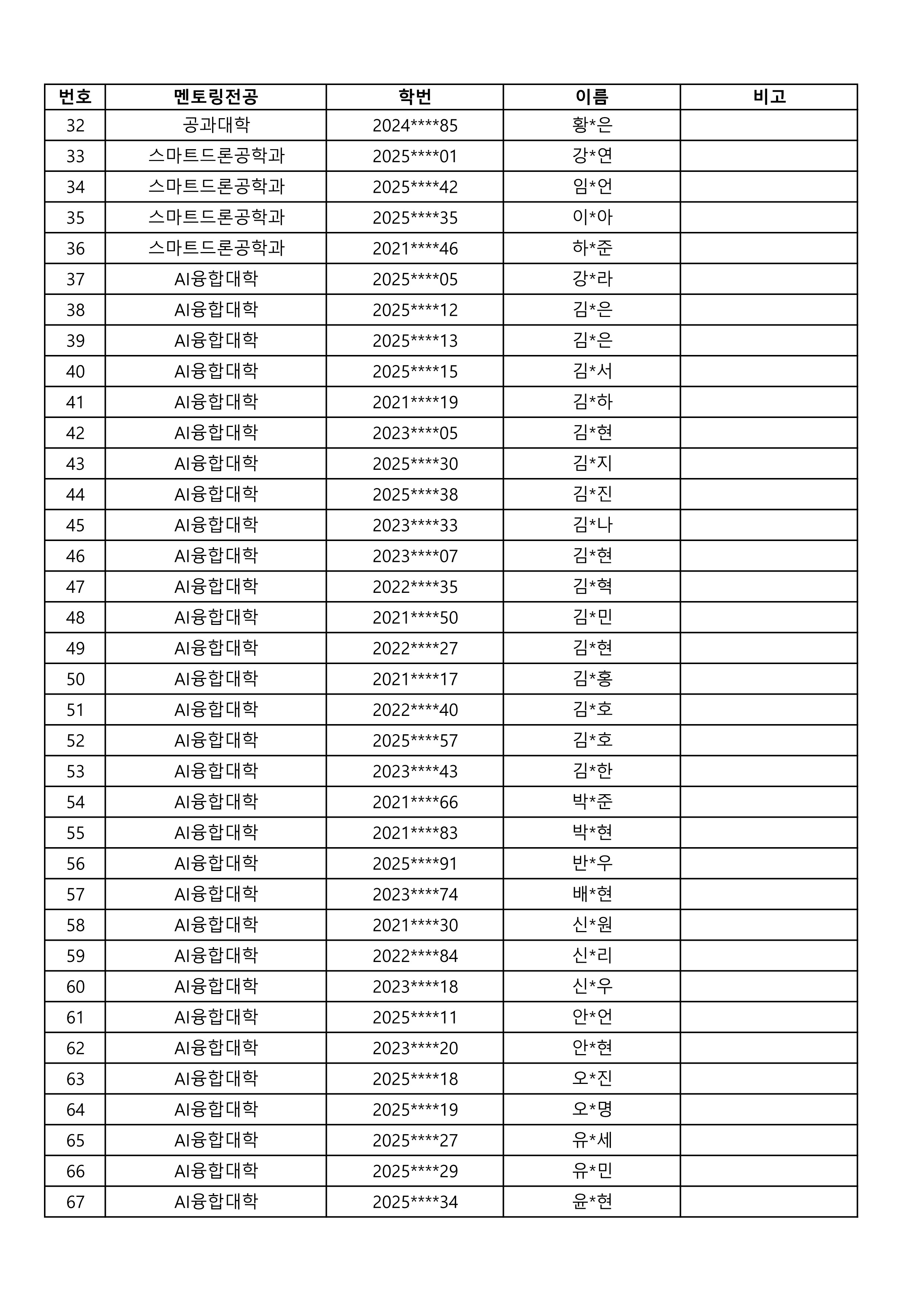 2025-2 10월 우수활동 신입생멘티 장학금 대상자
