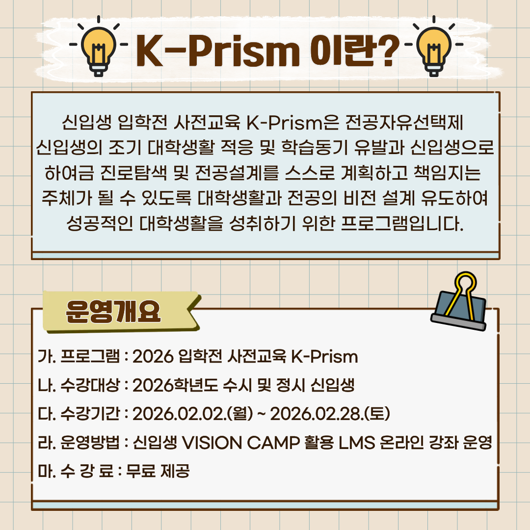 가. 프로그램 : 2026 입학전 사전교육 K-Prism