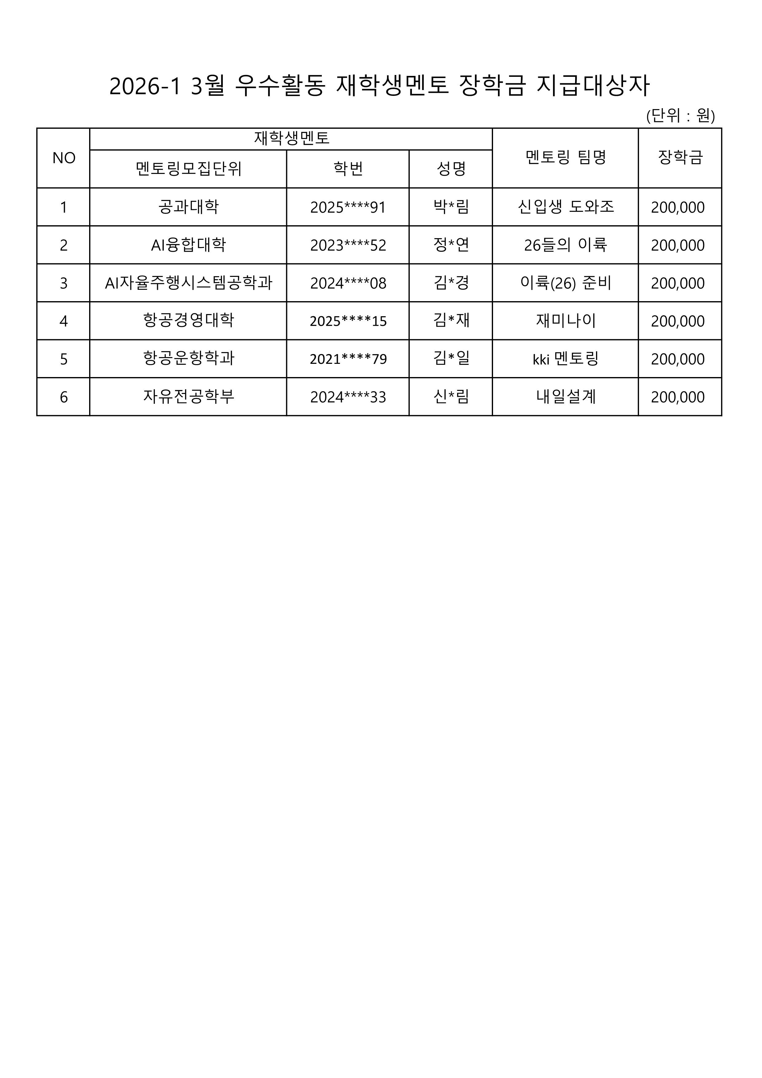 2026-1 3월 우수활동 재학생멘토 장학금 지급대상자