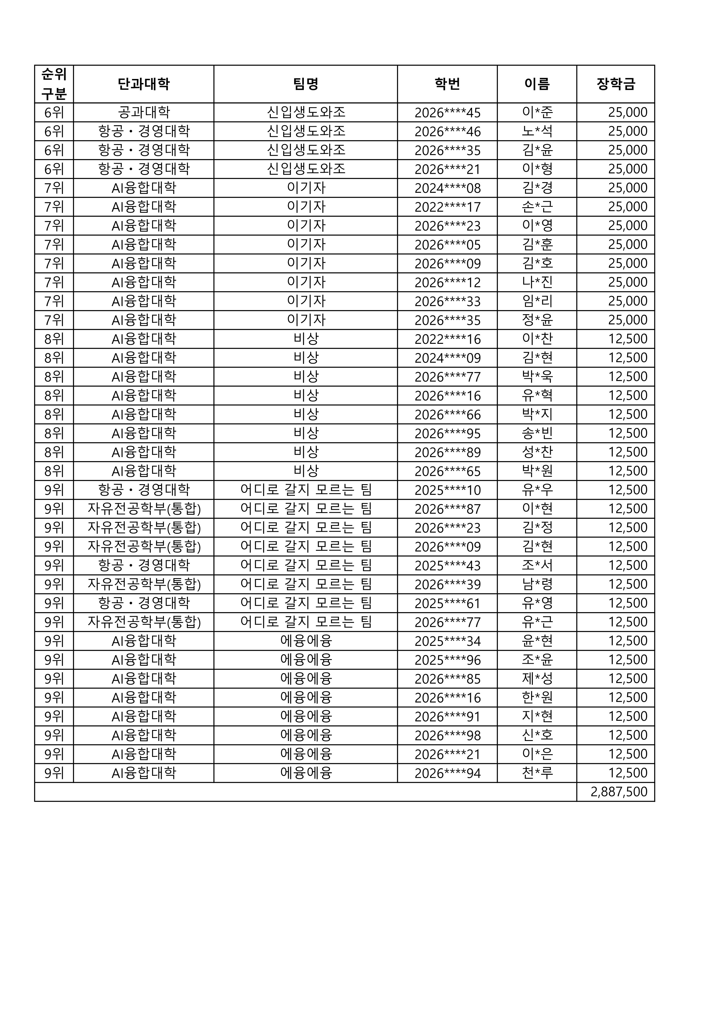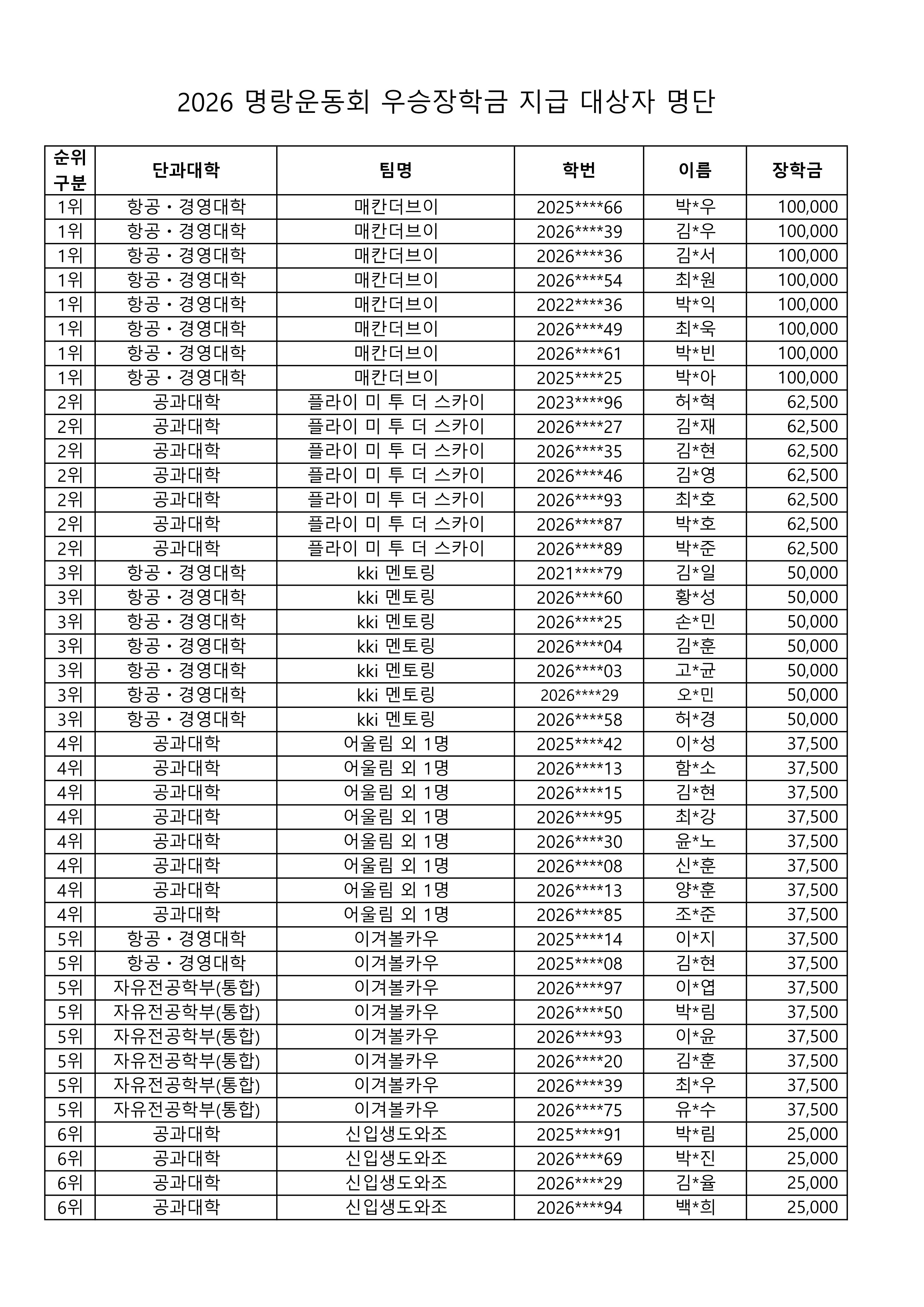 2026 명랑운동회 우승장학금 지급대상자 안내