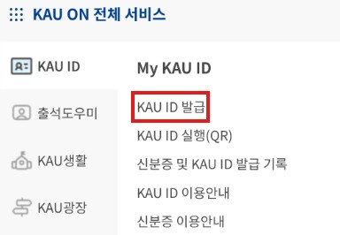 3. KAU ON 실행 → 메뉴 → KAU ID → KAU ID발급